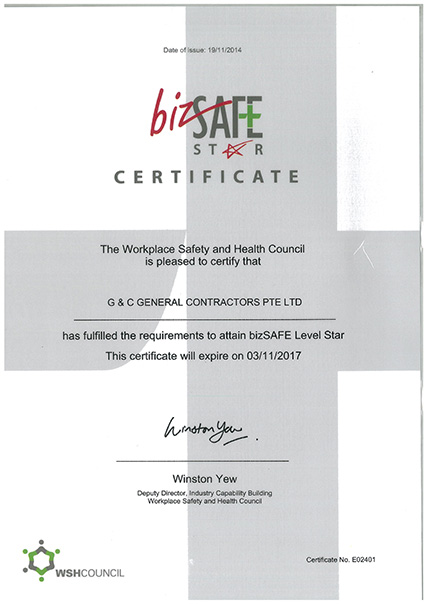 The company has achieved the certification of ISO 9001:2000 on 3 June 2003, OHSAS 18001:2007 on 5 May 2010, ISO 1401:2004 on 28 Mar 2011 and BizSAFE Enterprise Level Start on 22 Dec 2011.